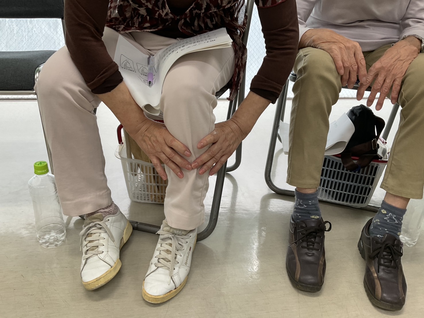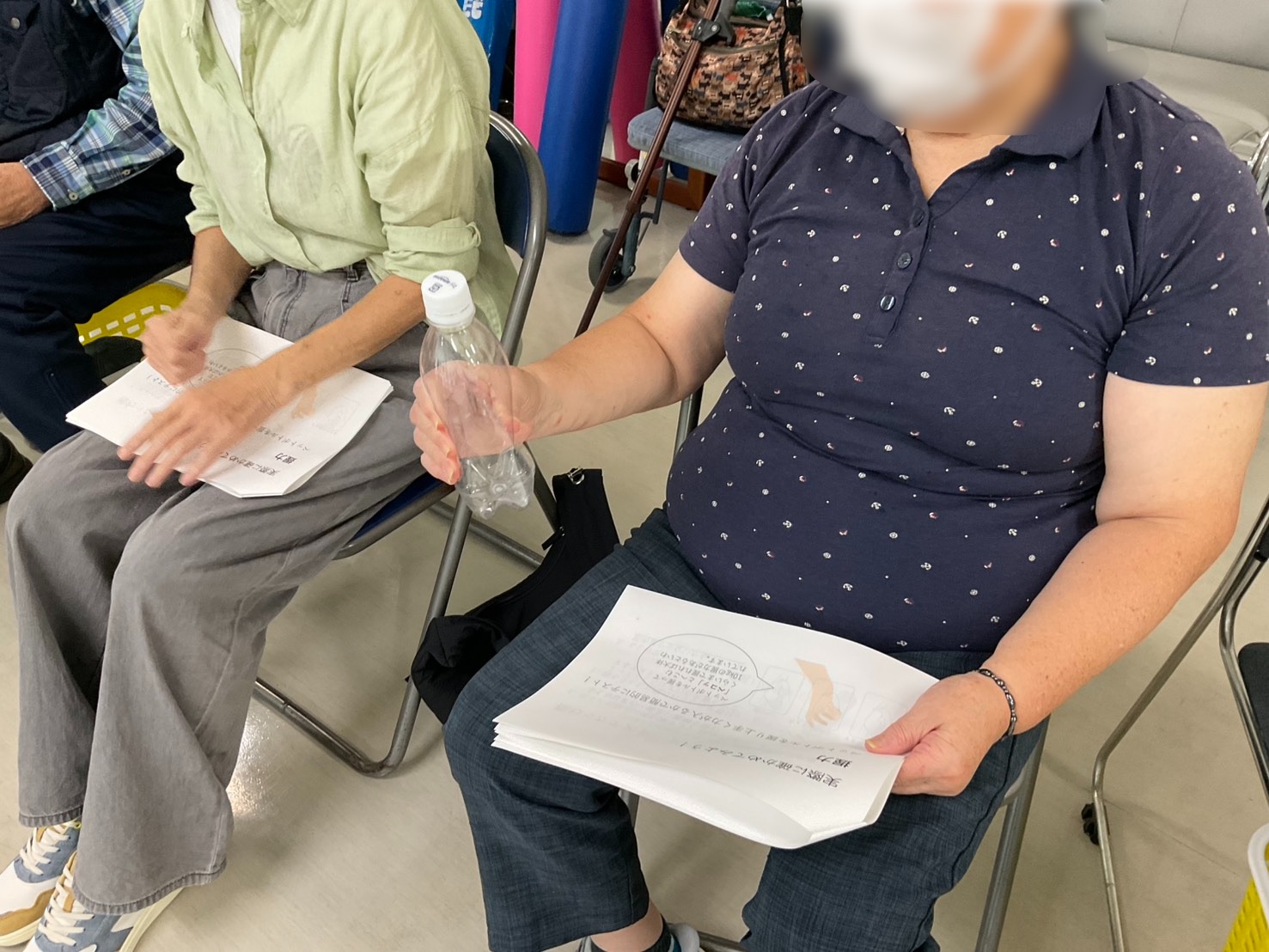 ペットボトルを潰して握力を測定したり、患者様ご自身のふくらはぎの筋肉がどのくらいあるのかをスタッフと一緒に確認する様子も見られました。